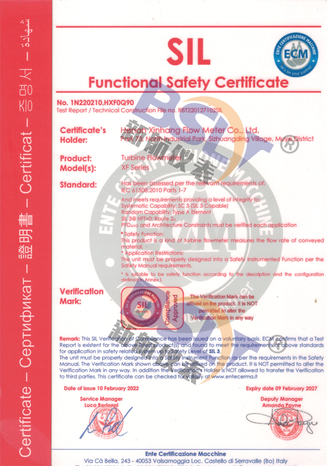 渦輪流量計sil證書2