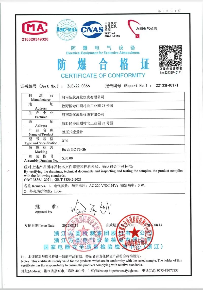 電磁流量計sil證書2