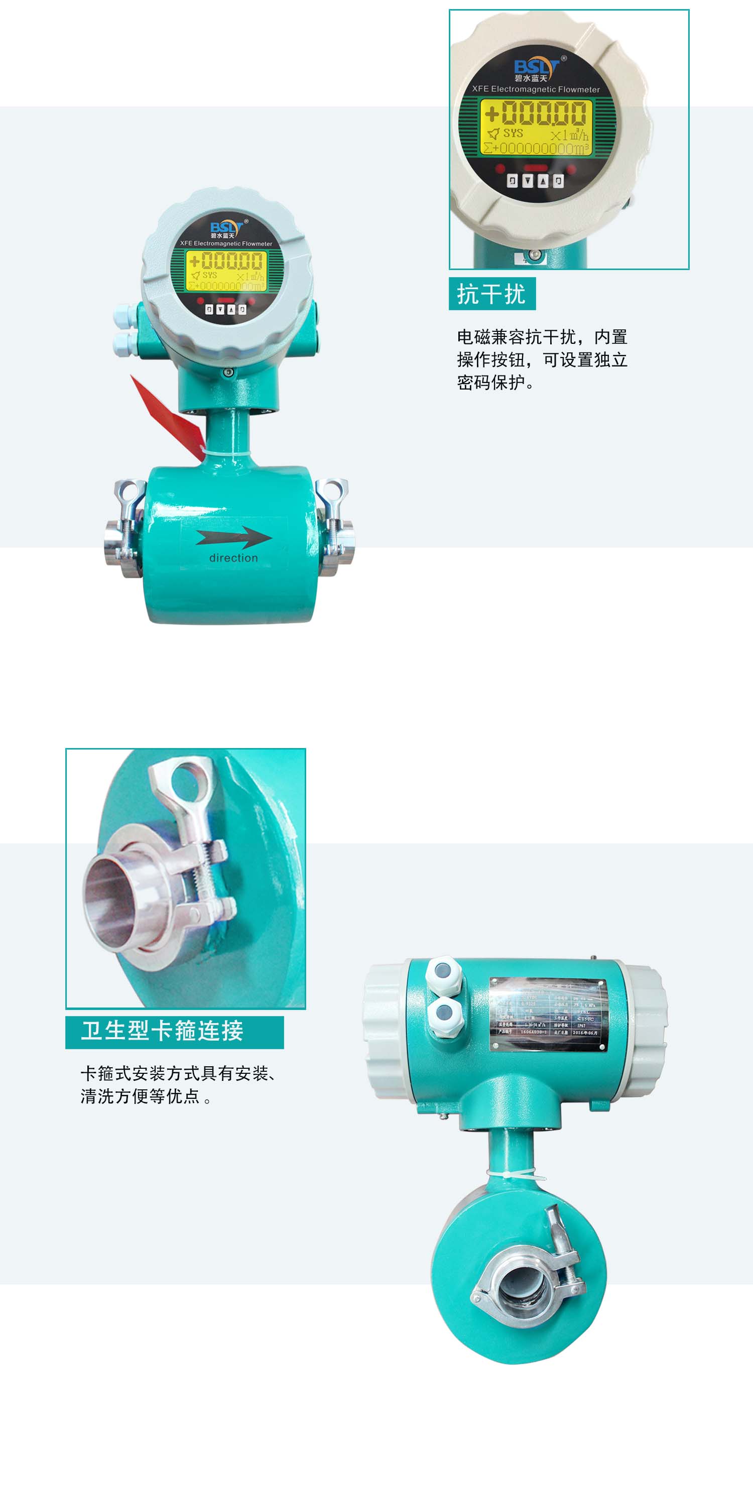18、轉(zhuǎn)換器顯示界面:中英文的LCD顯示界面和操作界面可切換,(可定制其他語言)可以顯示瞬時(shí)流量, 累計(jì)流量,有多種流量單位供選擇。